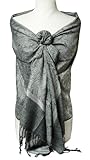 Elegant Black & Grey Reversible Paisley Pashmina Silk Shawl Wrap Feature