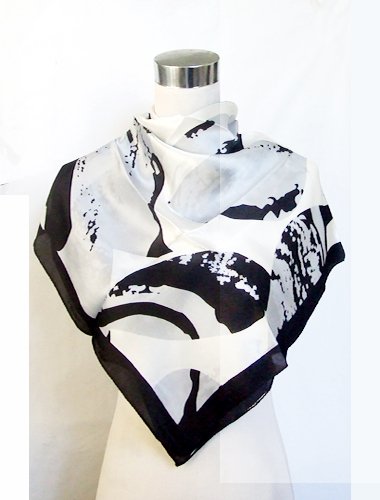 Satin Gray/Black Leaf Print on White - Silk Square Scarf 35" x 35" (Clearance) Feature
