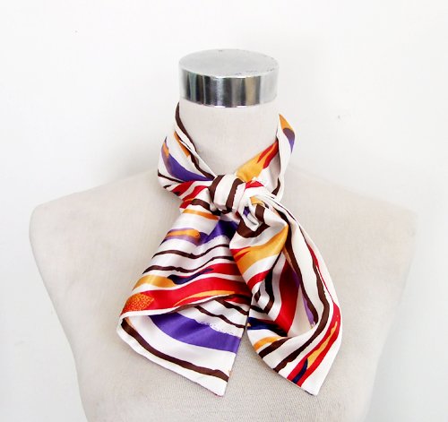 Silk-Feel Magic Fashion Neck Scarf - Multicolored Strips on Ivory Design (40+ tying styles) Overview