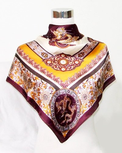 A gorgeous gold dragon and ornamental print on purple and orange scarf offers you the feminine beauty and glamour you desire, with soft touch and high luster. Made of crepe satin, 100% silk, light-weighted, soft and smooth with an iridescent look. Imported. this item may have minor pulls or tiny miscolored smudges. Not noticeable. Wearing/tying not effected.** CERTAIN CONTENT THAT APPEARS THIS SITE COMES FROM AMAZON SERVICES LLC. THIS CONTENT IS PROVIDED ‘AS IS’ AND IS SUBJECT TO CHANGE OR REMOVAL AT ANY TIME.