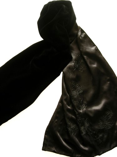 Elegant, chic and sophisticated aptly describe our new black velvet shawl wrap for that special occasion coming up. This velvet wrap is made of a high quality velvet - not velveteen or polyester velvet. Also the reverse side is done in full pure fine black silk and is adorned on both ends with a beautiful black floral design making this velvet wrap very unique and distinctive. This wrap can be worn on either side giving you two distinct looks for the price of one shawl.** CERTAIN CONTENT THAT APPEARS THIS SITE COMES FROM AMAZON SERVICES LLC. THIS CONTENT IS PROVIDED ‘AS IS’ AND IS SUBJECT TO CHANGE OR REMOVAL AT ANY TIME.