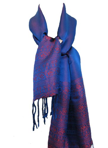 The jeweled color of this fringed silk scarf is woven with a subtle complementing/contrasting color, giving it a shimmery and lustrous effect under the light. The scarf has been carefully decorated with classic Vietnamese motifs. Made with 100% Satin silk. Size: 65" x 17", with 3" fringed ends.** CERTAIN CONTENT THAT APPEARS THIS SITE COMES FROM AMAZON SERVICES LLC. THIS CONTENT IS PROVIDED ‘AS IS’ AND IS SUBJECT TO CHANGE OR REMOVAL AT ANY TIME.