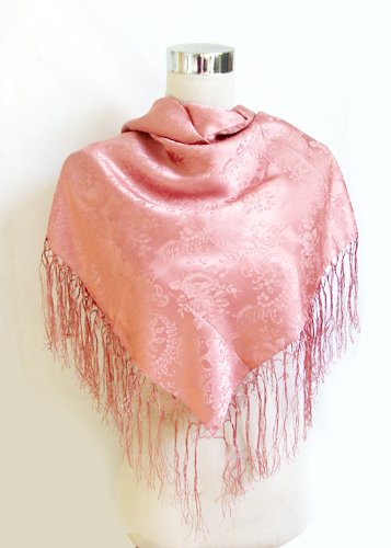 Jacquard Dusty Rose Silk Square Scarf with Fringes 36" x 36" Feature